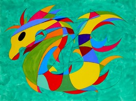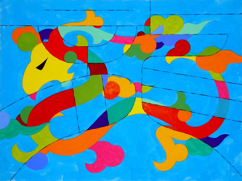 畫家金佩良運用其國畫、書法、篆刻、油畫、水彩和設計的藝術背景,收集並參考了中國數千年來傳統藝術如石刻、木刻、剪紙、刺繡、壁畫、陶瓷以及現代歐美畫風,繪製了這12條彩龍。每幅彩龍共使用了18 套色組合而成(一個背景色與17個彩龍本色),與中國書法四體(正、草、書、隸)的篆刻手法勾勒出"龍"字,使龍字的筆劃交錯成為不等形的獨特龍身色塊,成為12條名符其實的現代中國彩龍。 When artist Peiliang Jin was asked by the World Journal to create 12 unique dragons for their annual calendar, he knew he wanted to incorporate a wide variety of traditional and modern art from Chinese, European and American traditions. The finished works include elements of calligraphy,seal cutting, oil and watercolor painting, sculpture, wood and paper cutting,embroidery, wall painting, ceramics and porcelain. Each month’s illustration has as a background one of the 12 unique colors in the 12-Color Wheel and 17 other different colors. A different representation of the Chinese character for “dragon,” taken from history andliterature, is used for each illustration, making each dragon authentic and unique. | |||